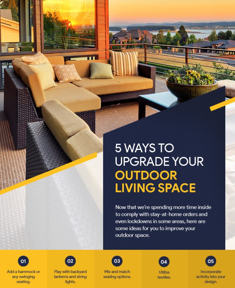 Now that we're spending more time inside to comply with stay-at-home orders and even lockdowns in some areas, here are some ideas for you to improve your outdoor space so you can soak up a lil’ bit more sunshine or simply enjoy the nightlife just outside your front door.