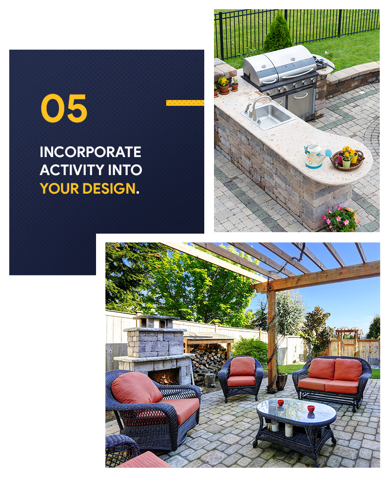 In creating your perfect outdoor oasis, it should not only be stylish, cozy, and comfortable, but also functional. It's where you would love to curl up at night with a good book and a glass of wine, or where your family will have dining al fresco on the summer days, so why not equip it with amenities that will encourage activity. In the Zillow research, fire features and outdoor kitchens are particularly popular options.