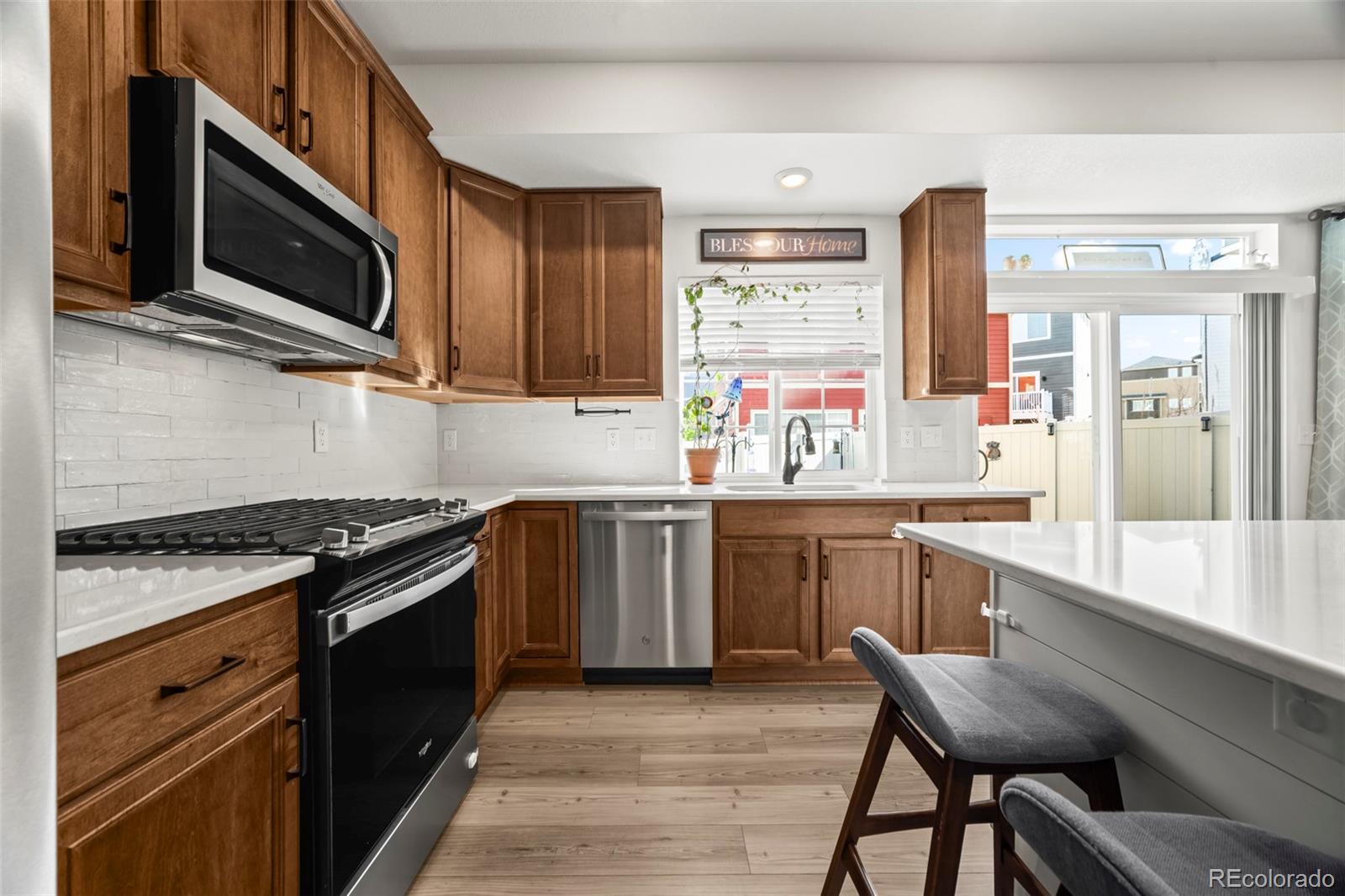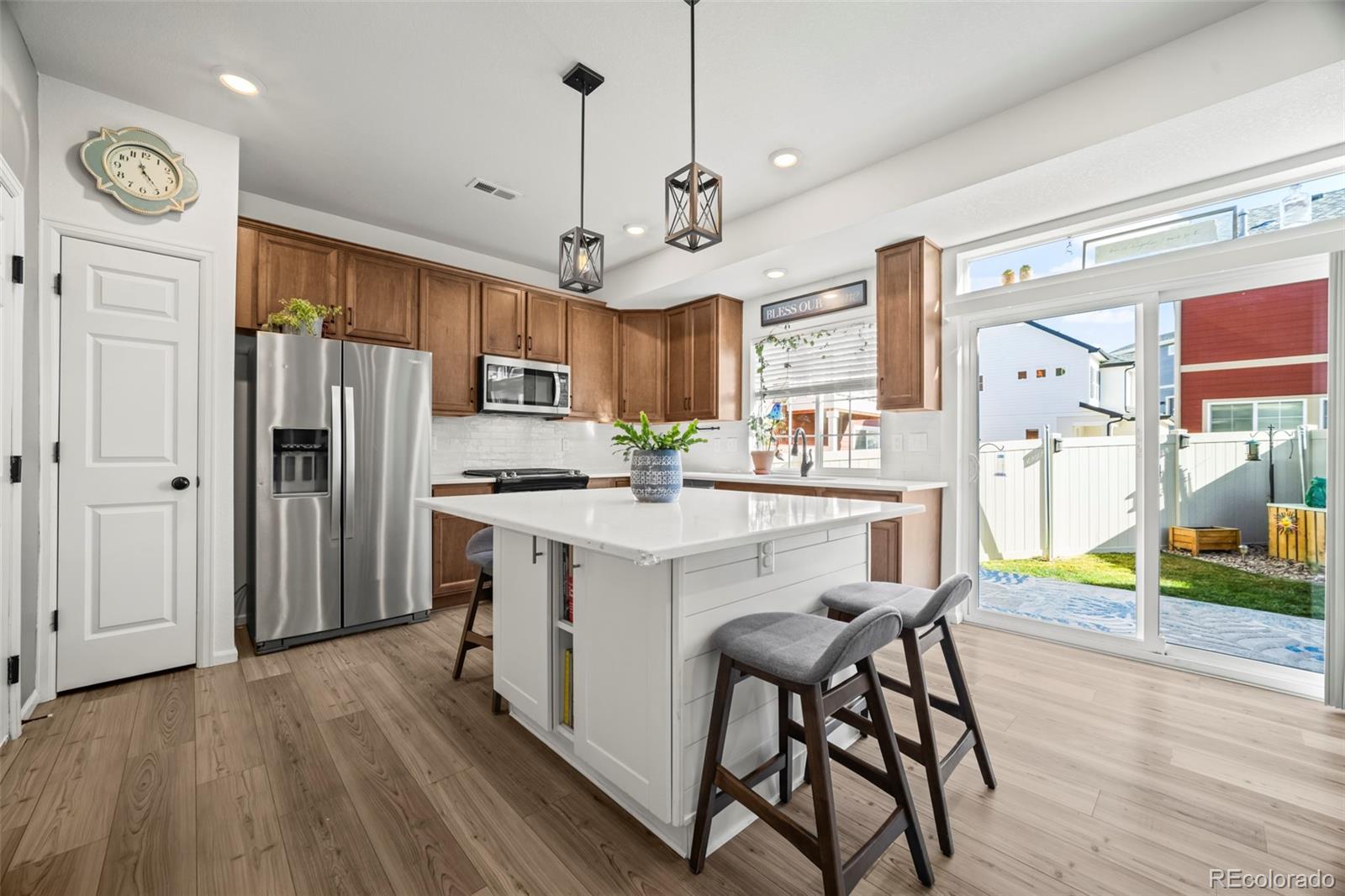 Welcome to 1174 Highlands Drive, a beautiful, well appointed, customized home in the highly desirable Erie Highalnds community of Erie. This light, bright home blends luxury design updates, spacious living/kitchen/dining and amazing outdoor space great for effortless entertaining. Step inside to a bright, open main level featuring expansive windows, amazing natural light, with custom fireplace back splash. The expansive kitchen serves as the heart of the home, complete with quartz countertops, abundant cabinetry, a large island, large pantry. Upstairs, the serene primary suite provides a peaceful retreat with a large walk-in closet and a well-appointed upgraded bath and walk-in tiled shower and two sinks. Additional bedrooms offer flexibility for guests, hobbies, or a home office. Laundry room offers tons of storage, customized cabinets, and awesome counter space for folding! All rooms have upgraded lighting, many with dimmers for ease and ambiance. Outside, enjoy a beautifully landscaped yard with garden area, perfect for relaxing or dining al fresco - and great storage in the spacious shed! Located minutes from top-rated schools, parks, trails, and all the charm Erie has to offer, this move-in-ready home delivers exceptional convenience, comfort, and style.