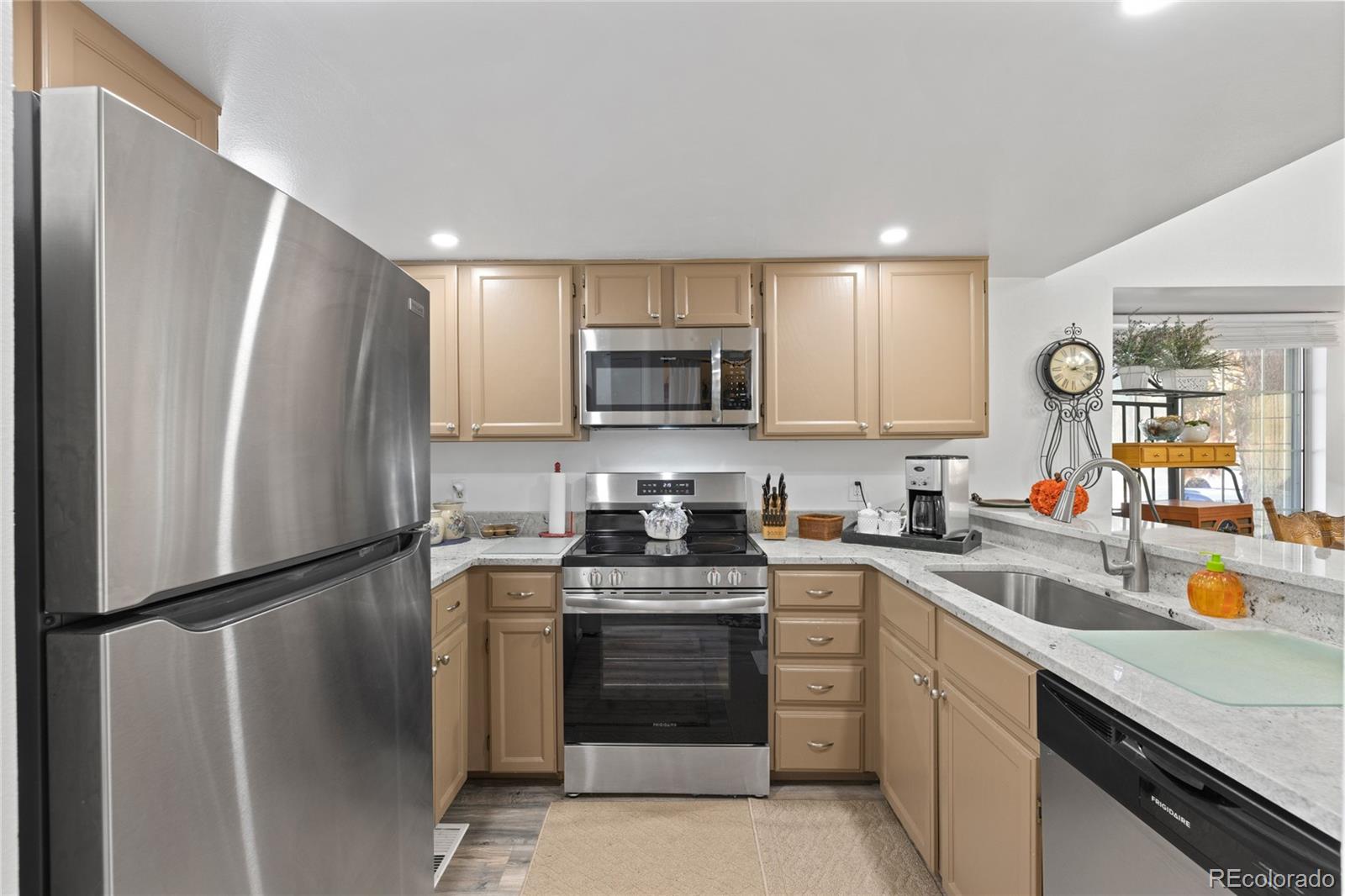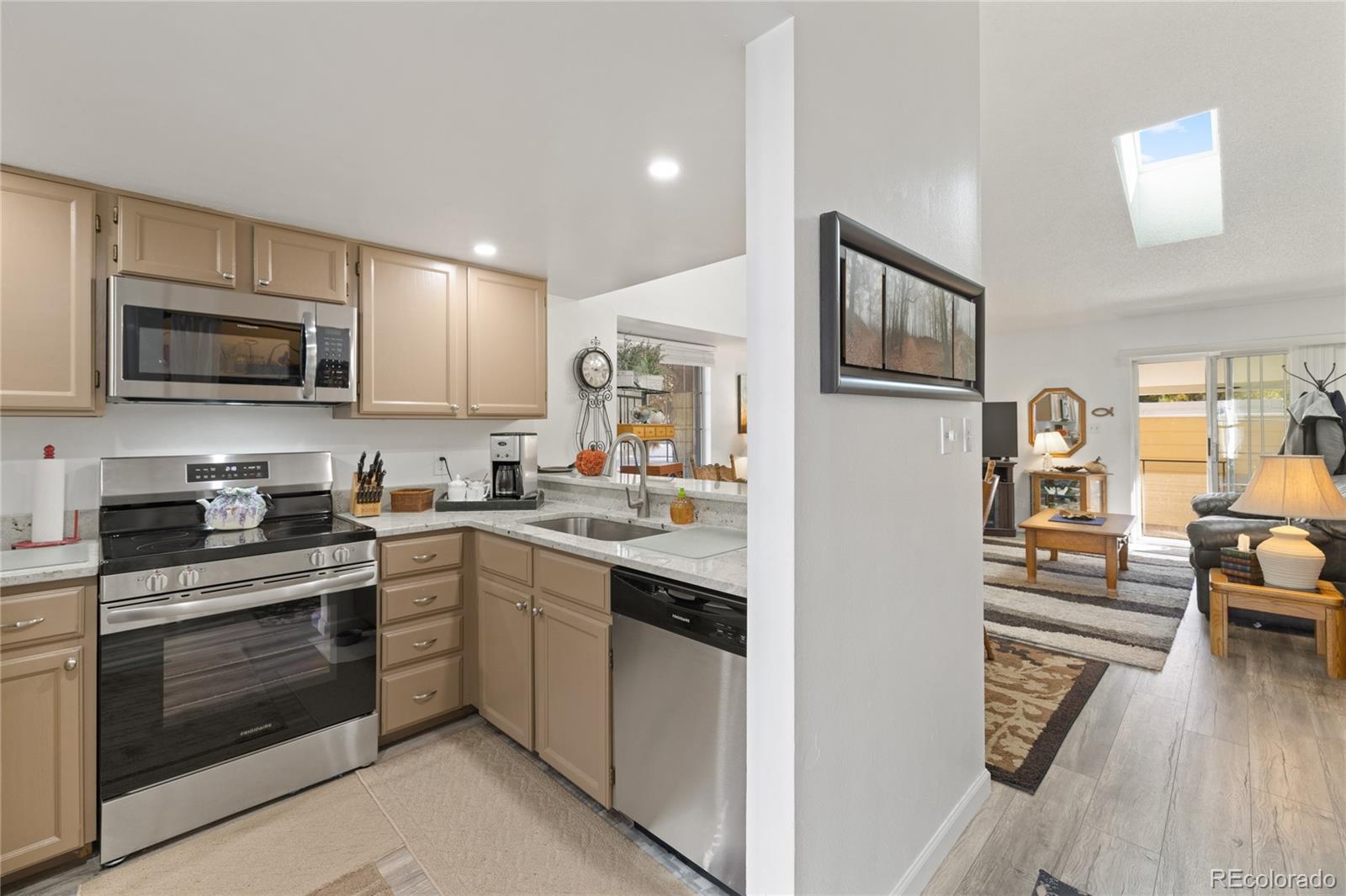 Welcome to 2021 S Balsam Street, a beautifully updated Lakewood townhome combining modern comfort with timeless style. This inviting residence offers an open and functional layout designed for everyday living and effortless entertaining. Step inside to find a bright living area filled with natural light, featuring contemporary finishes, luxury vinyl plank flooring, and a seamless flow into the dining space and kitchen. The updated kitchen boasts sleek countertops, stainless steel appliances and ample cabinet space for all your culinary needs. The spacious primary suite provides a relaxing retreat, complete with an en-suite bath for added privacy. The additional bedroom provides room for guests, a home office, or hobbies. Step outside to enjoy a private patio and plenty of room for outdoor dining. Nestled in a quiet, established neighborhood, this home is conveniently located near parks, trails, schools, shopping, and easy commuter access to downtown Denver and the foothills. With tasteful updates throughout and a welcoming atmosphere, 2021 S Balsam Street offers the perfect balance of comfort, style, and location.
