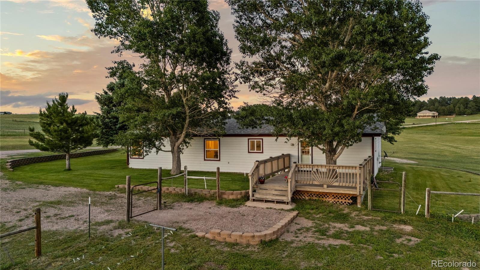 Welcome to this charming 3-bedroom, 2-bathroom home nestled on 8.22 picturesque acres in scenic Kiowa. With sweeping views of Pikes Peak and the Front Range, every morning begins with coffee and tranquility, and every evening ends with vibrant sunsets from the expansive wood deck.