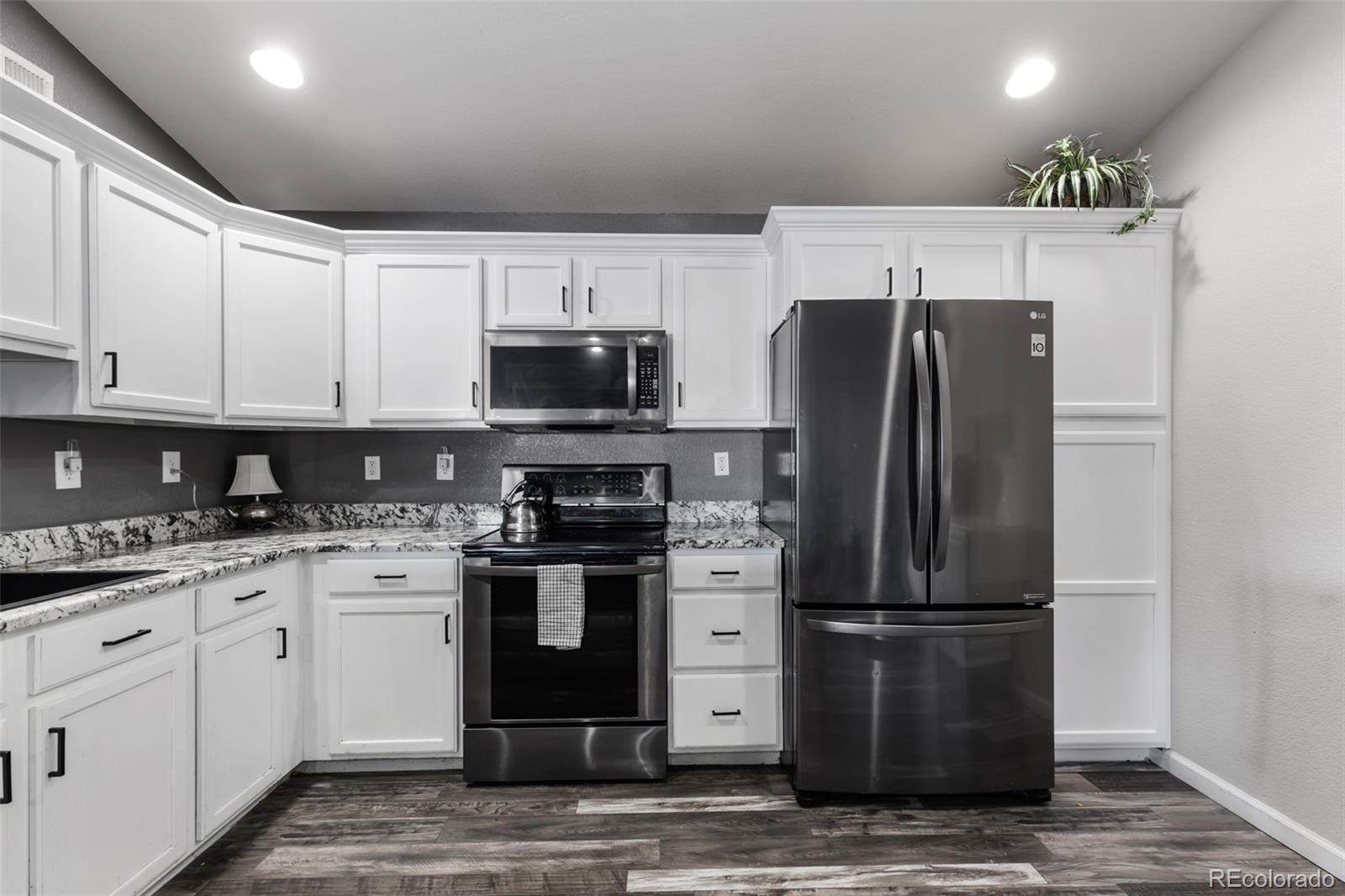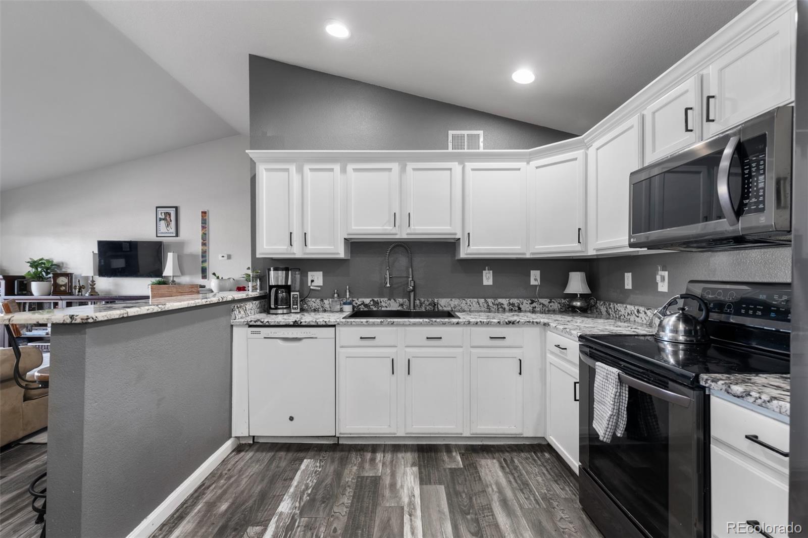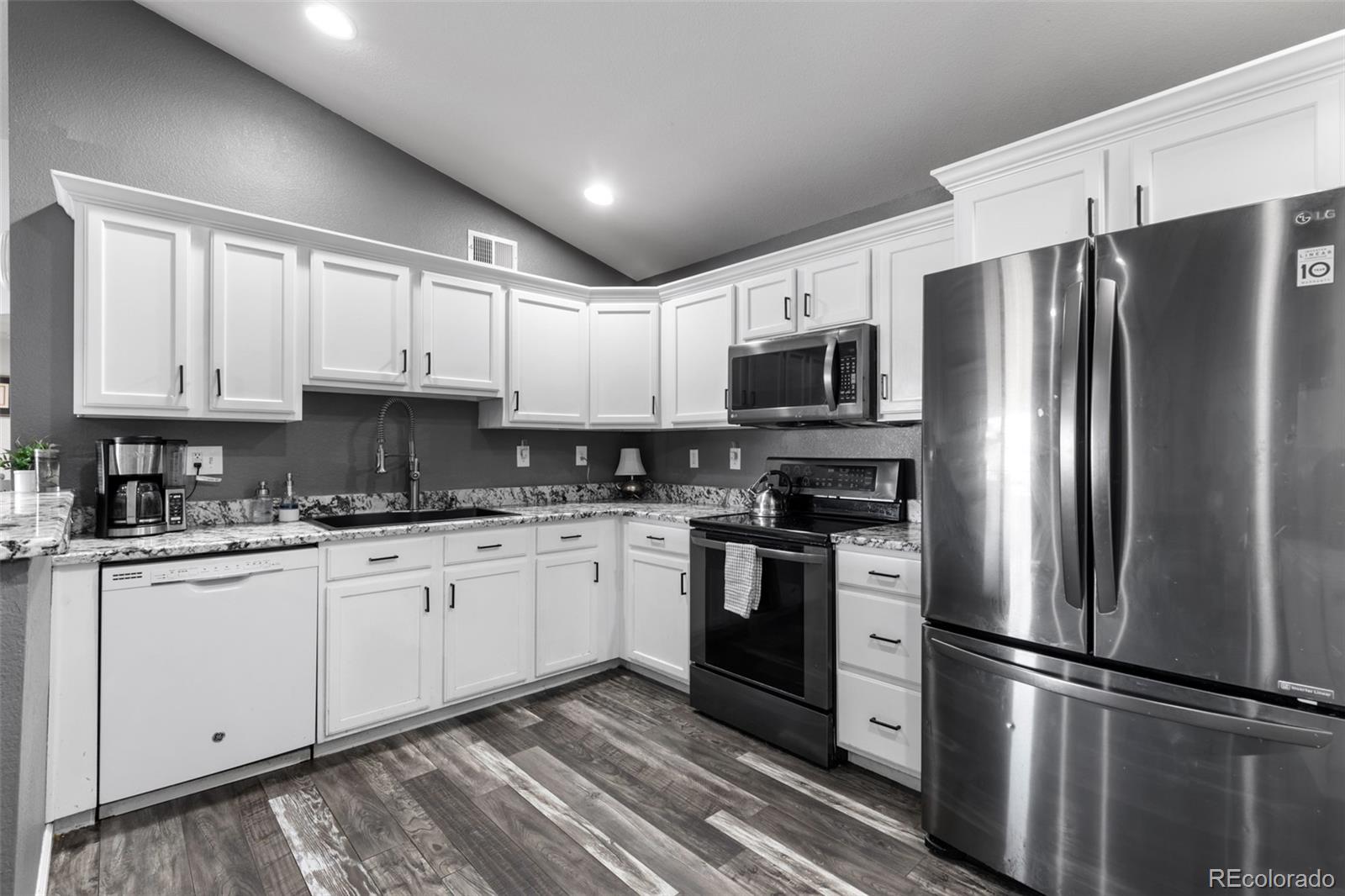 Welcome to your new home! Units in this complex rarely come on the market, the last one was 2022! This contemporary 3 bedroom, 2 bathroom condo offers the perfect blend of style, comfort, and convenience. Located in a prime area, on the edge of Thornton & Denver. As you step inside, you're greeted by a spacious and open floor plan, with abundant natural light streaming in through the balcony door, illuminating the sleek floors throughout. The living area is perfect for relaxation or entertainment, with plenty of space for gatherings with family and friends. The kitchen opens up into the living room and has enough room for a breakfast nook and an entertaining bar. featuring stainless steel appliances, granite countertops, and ample cabinet space for storage. Whether you're whipping up a quick meal or preparing a feast, this kitchen has everything you need. The condo offers three generously sized bedrooms, each providing a comfortable retreat at the end of the day. The primary bedroom boasts a private en-suite bathroom, complete with double sinks and a walk in closet. Outside, you'll find a private balcony where you can enjoy your morning coffee or unwind with a glass of wine in the evening, taking in the views!